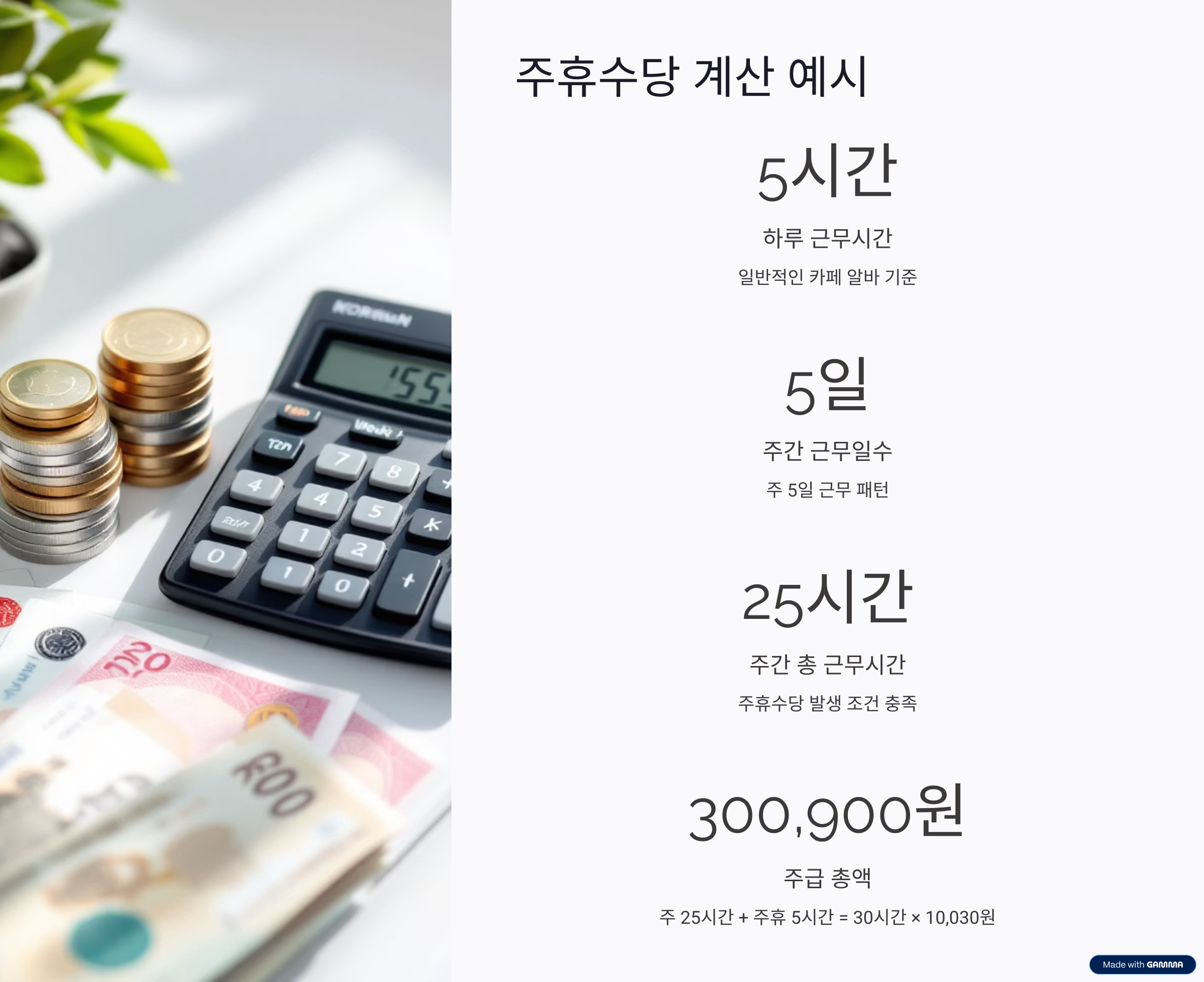 → 주 25시간 근무 + 주휴수당 5시간 → 총 30시간