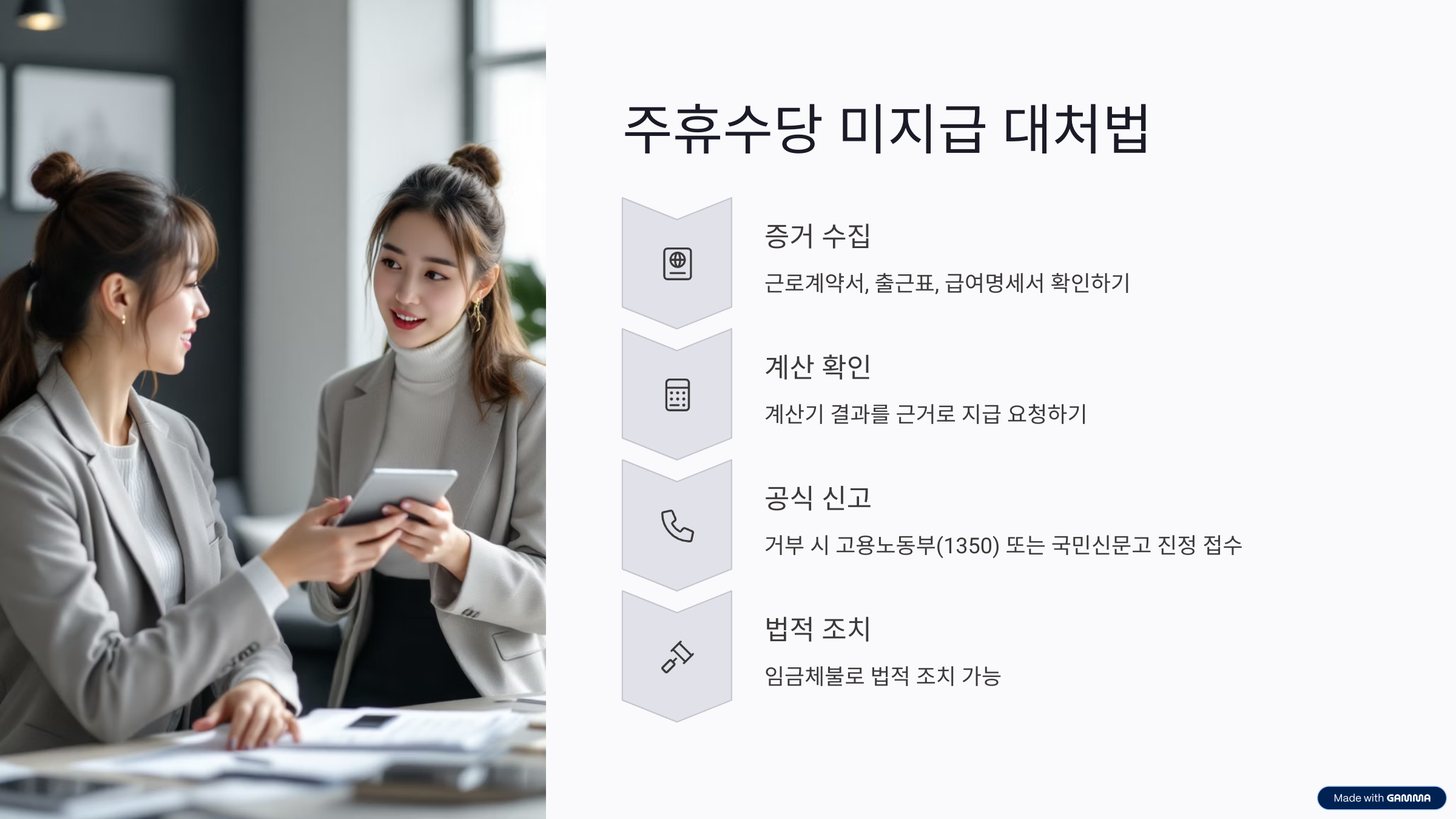 주휴수당 미지급은 명백한 ‘임금체불’입니다. 너무 부담 갖지 말고, 차분하게 대응하세요. 많은 사례에서, 요구만 해도 대부분 지급이 이루어졌습니다.