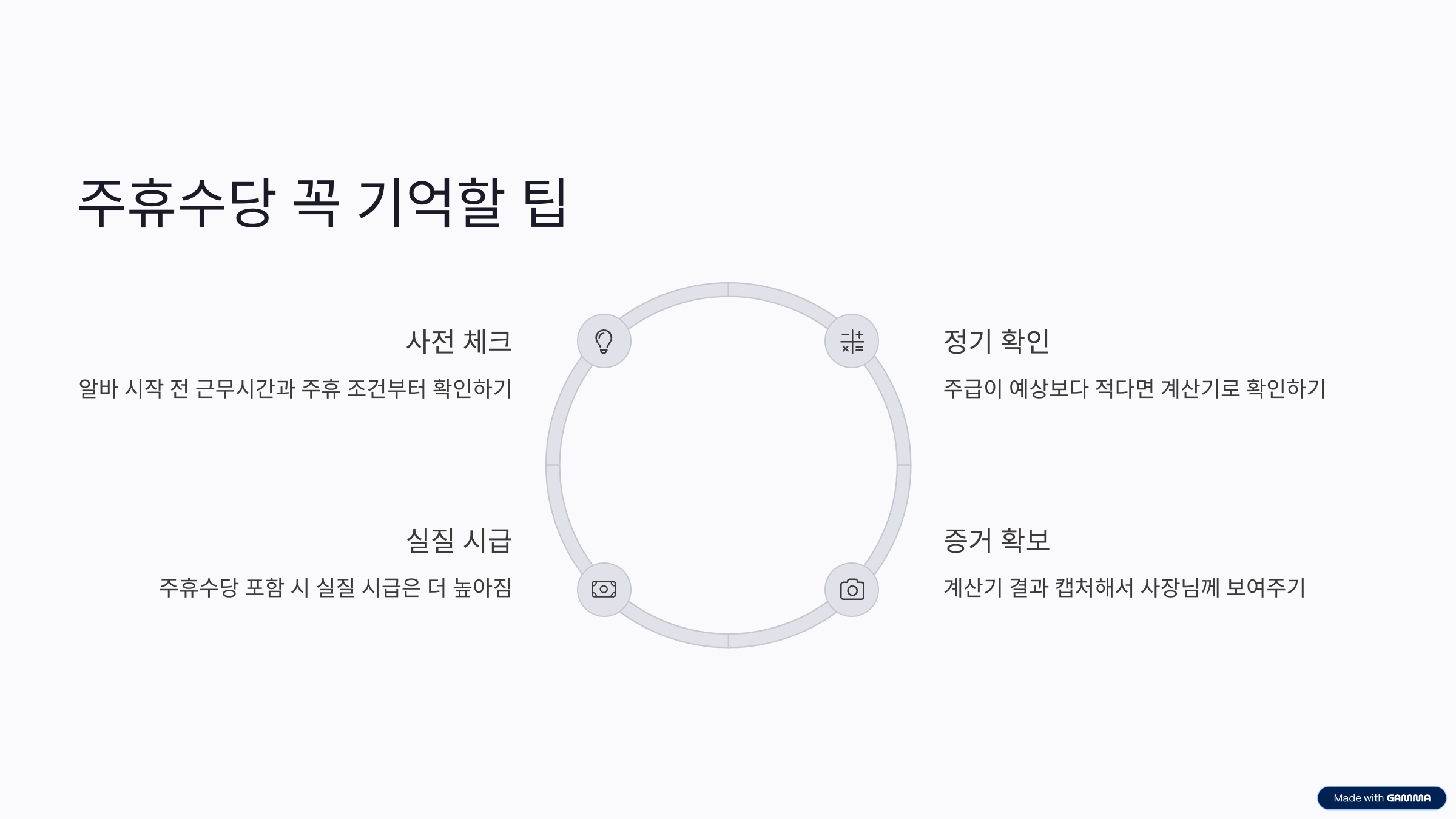 이 모든 내용을 한눈에 확인하고 싶다면, 알바 주휴수당 계산기를 주 1회씩 사용하는 것도 좋은 습관입니다. 특히 급여일 전후로 체크하면, 누락을 막을 수 있어요.
