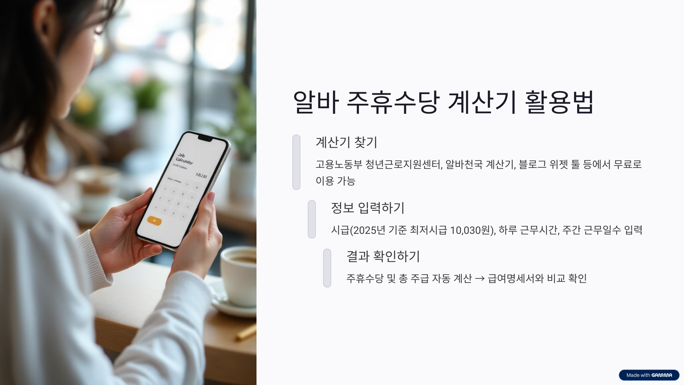 아르바이트를 하다 보면 “주휴수당 받았어?”라는 말을 한 번쯤 들어봤을 거예요. 특히 처음 아르바이트를 시작했거나, 이제 막 급여를 받기 시작한 분들에게는 낯설고 헷갈릴 수 있는 개념이죠. 주휴수당은 ‘조건만 충족하면 무조건 받을 수 있는 돈’입니다. 문제는 사장님이 챙겨주지 않으면 본인이 적극적으로 알아서 요청해야 받을 수 있다는 점이에요. 그래서 오늘은 알바 주휴수당 계산기를 활용해 정확하게 얼마나 받을 수 있는지, 언제 받을 수 있는지 하나하나 알려드릴게요.