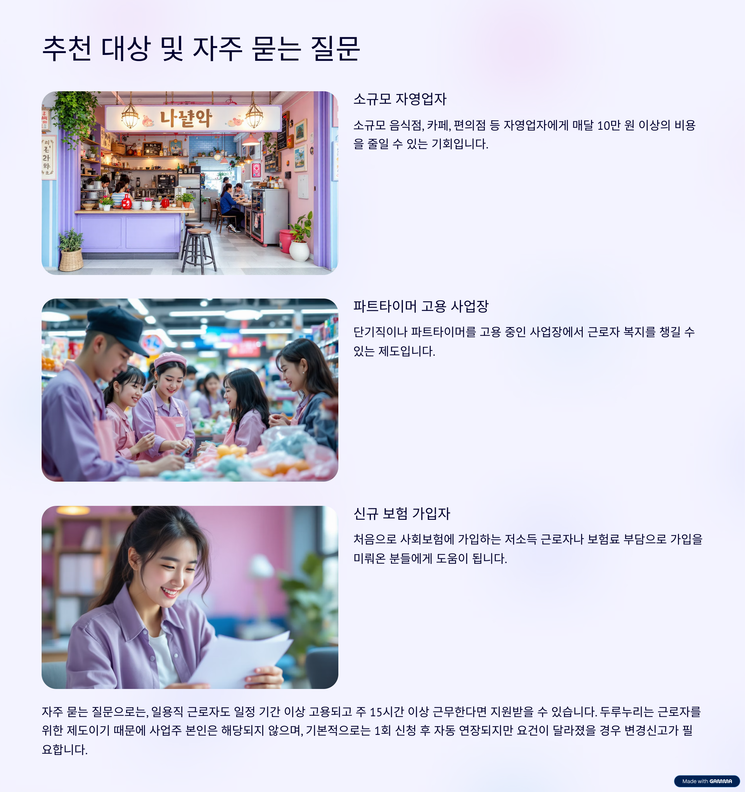 두루누리 사회보험은 다음과 같은 분들께 특히 도움이 많이 됩니다.