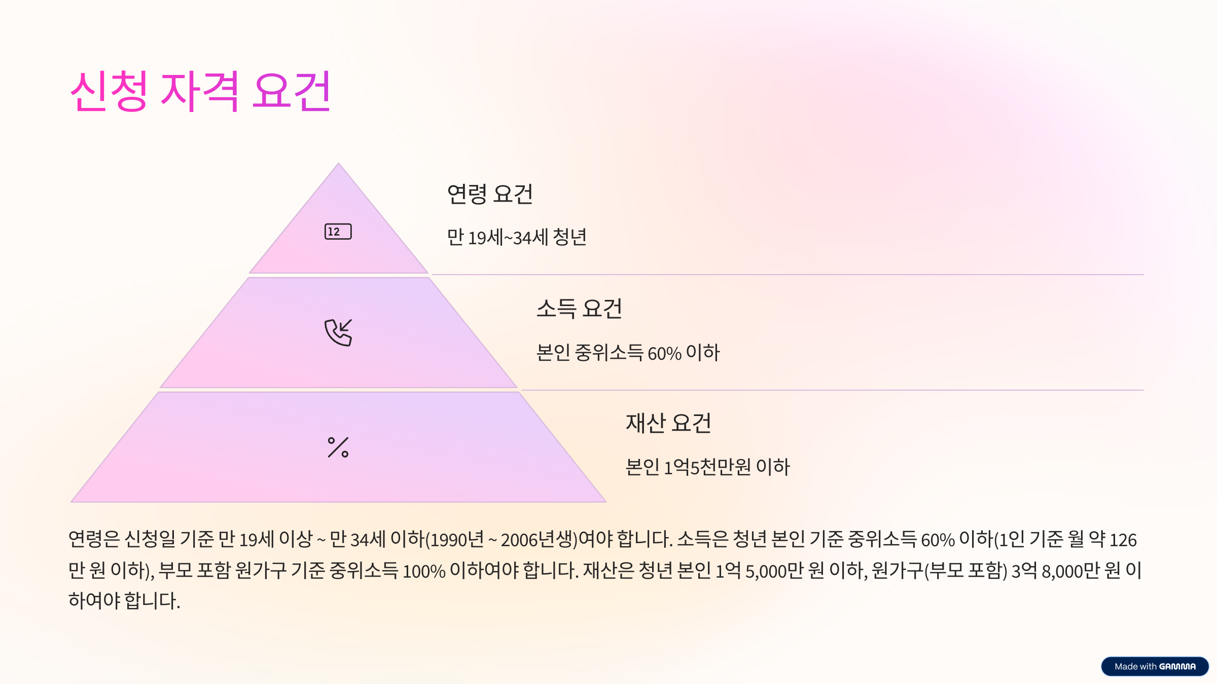 • 청년 본인 재산: 1억 5,000만 원 이하