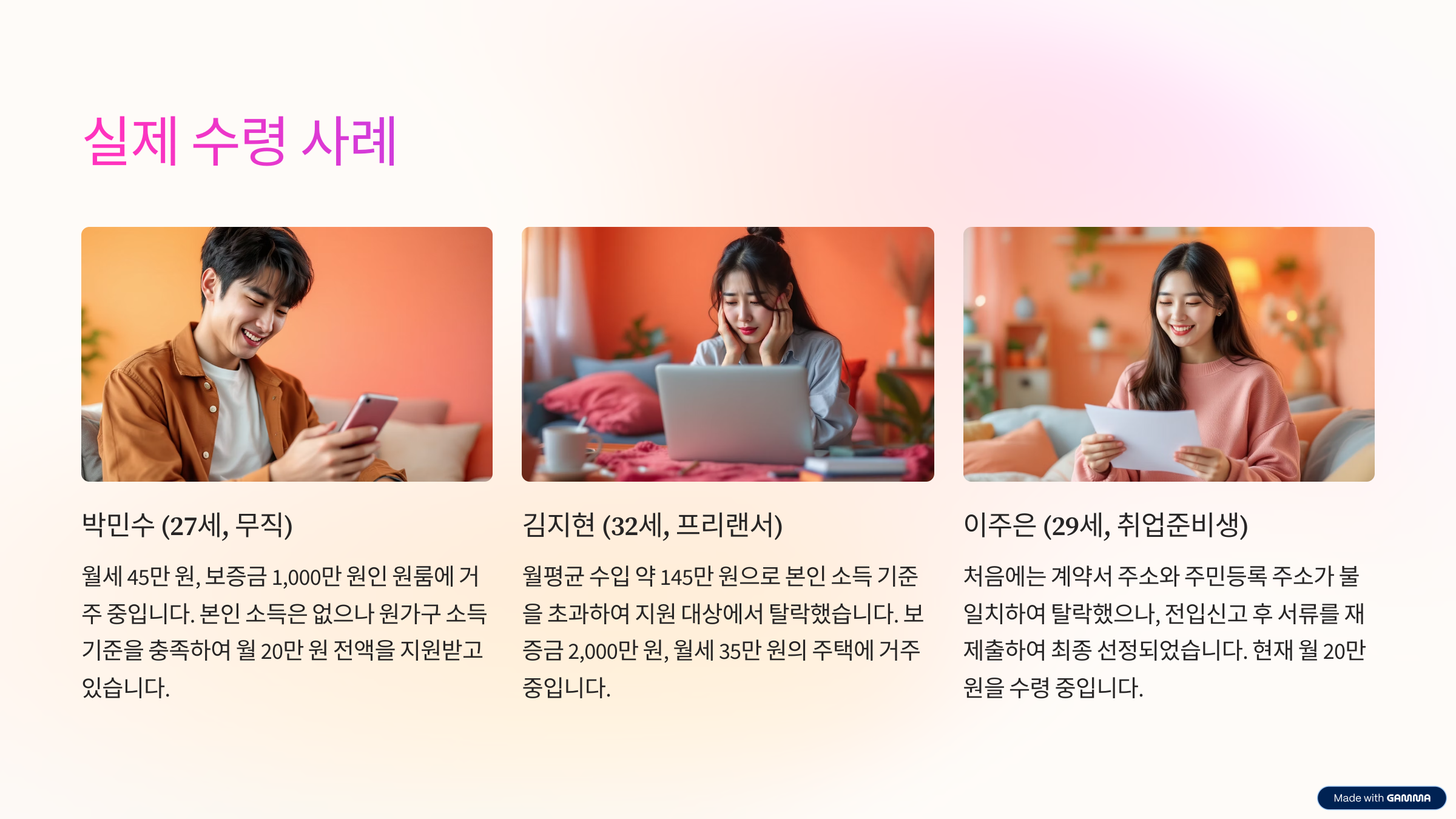 → 전입신고 후 서류 재제출 → 최종 선정 후 월 20만 원 수령