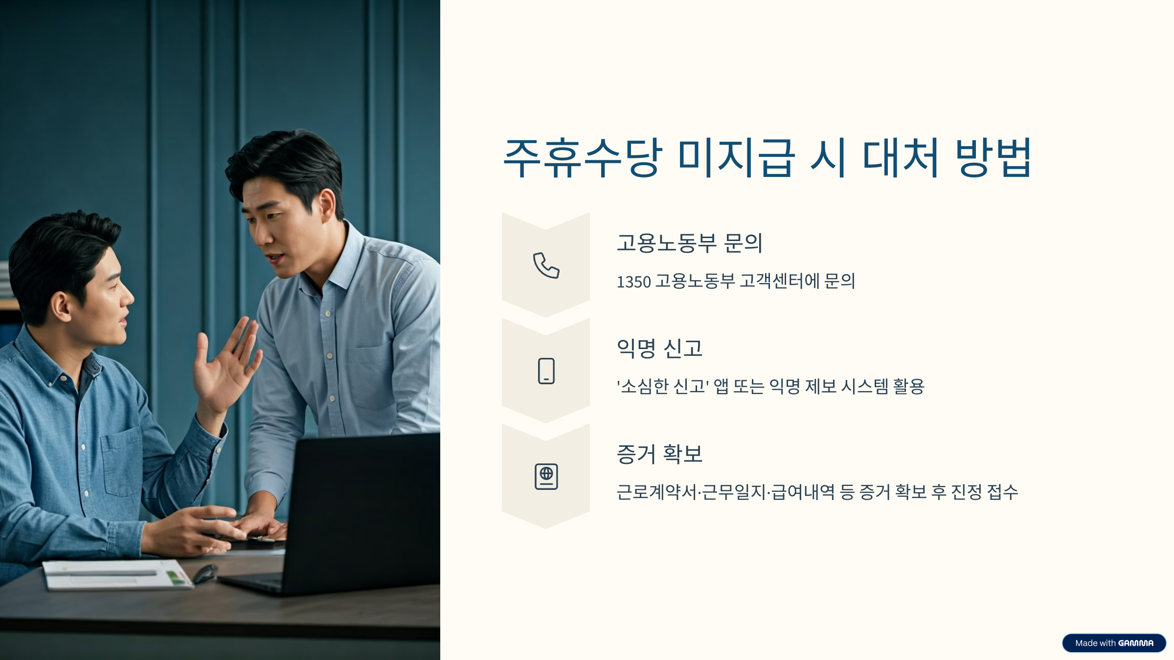 근로자가 주휴수당을 요구했는데 사장이 지급을 거부한다면? 아래 방법을 통해 권리를 지킬 수 있어요.