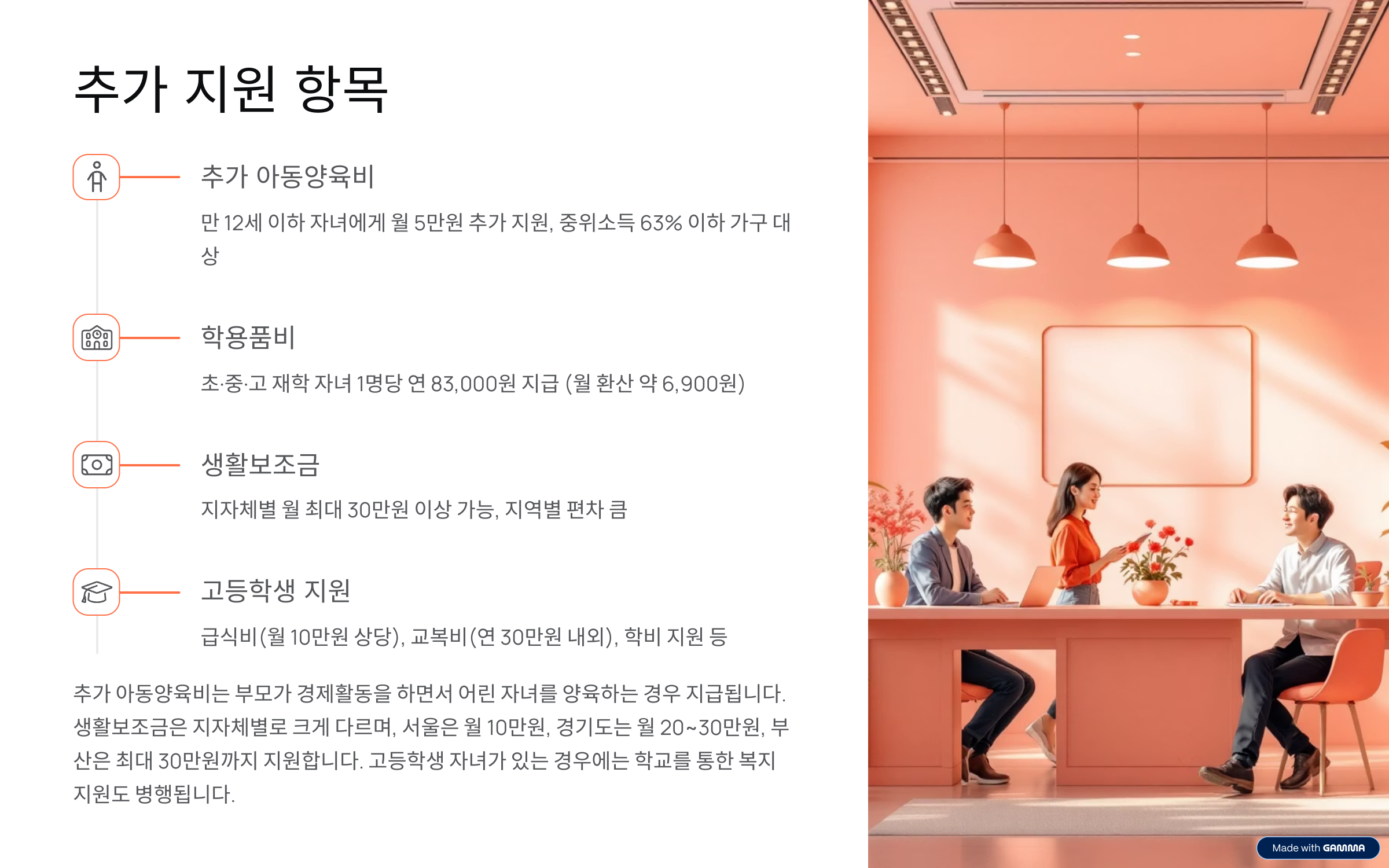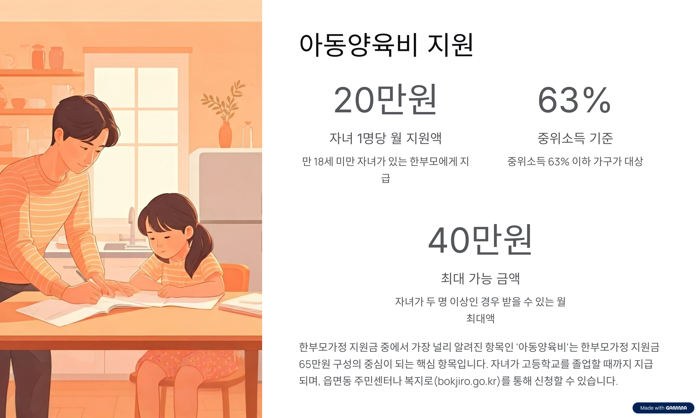 - 지급기간: 자녀가 고등학교 졸업 전까지