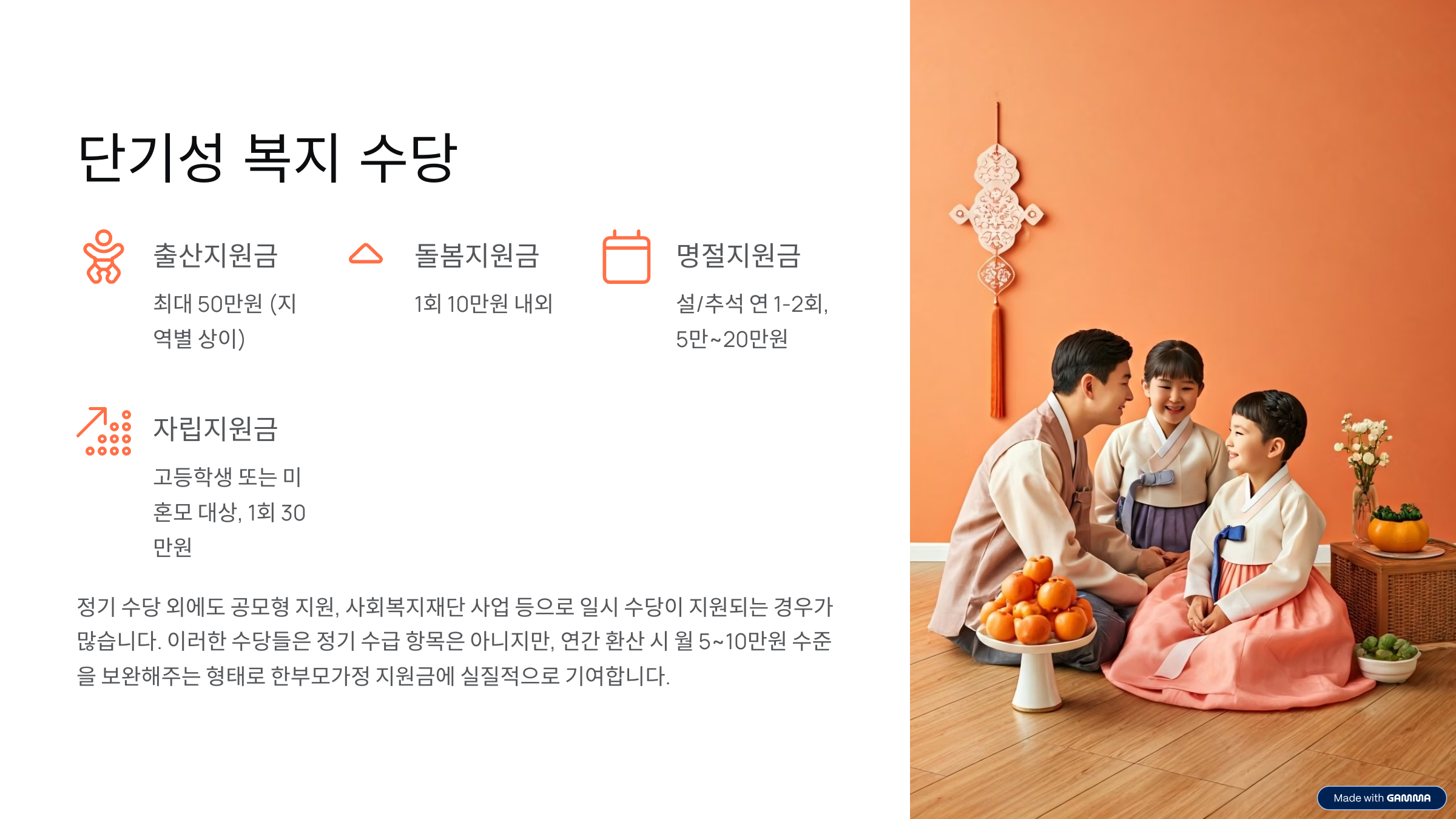 - 명절지원금: 설/추석 연 1