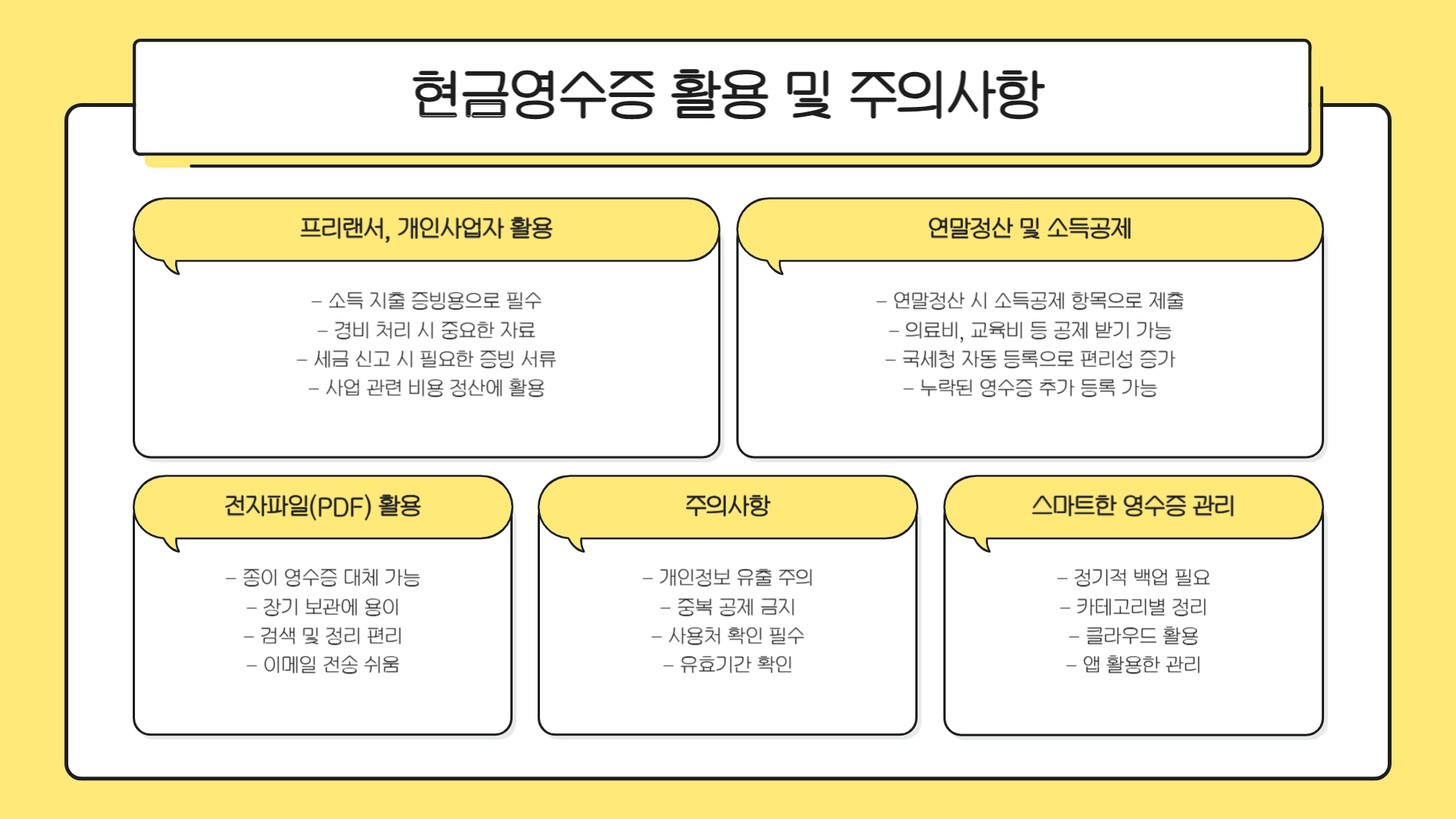 → 연말정산(소득공제 증빙), 프리랜서 비용 정산, 의료비·교육비 경비처리 등 다양하게 활용할 수 있습니다.