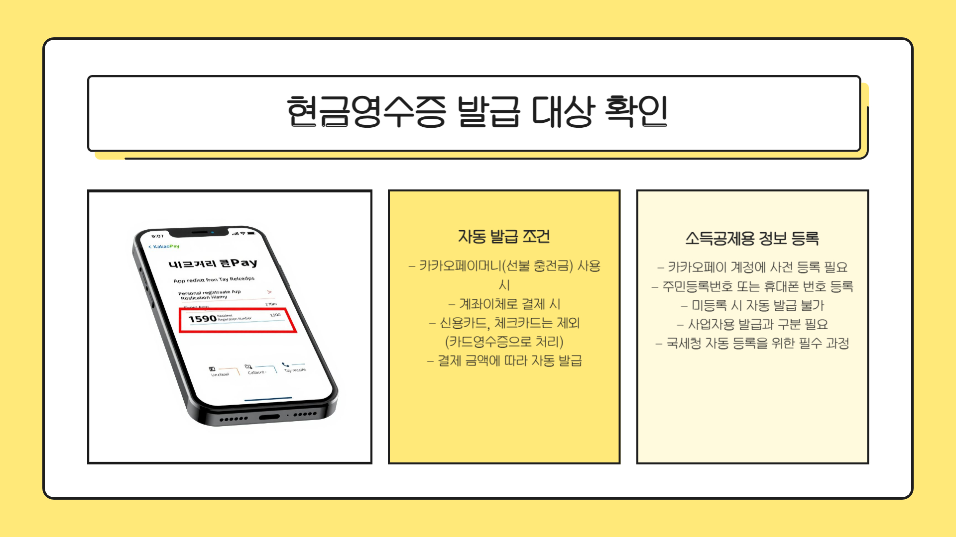카카오페이 결제 시 현금영수증 자동 발급 여부