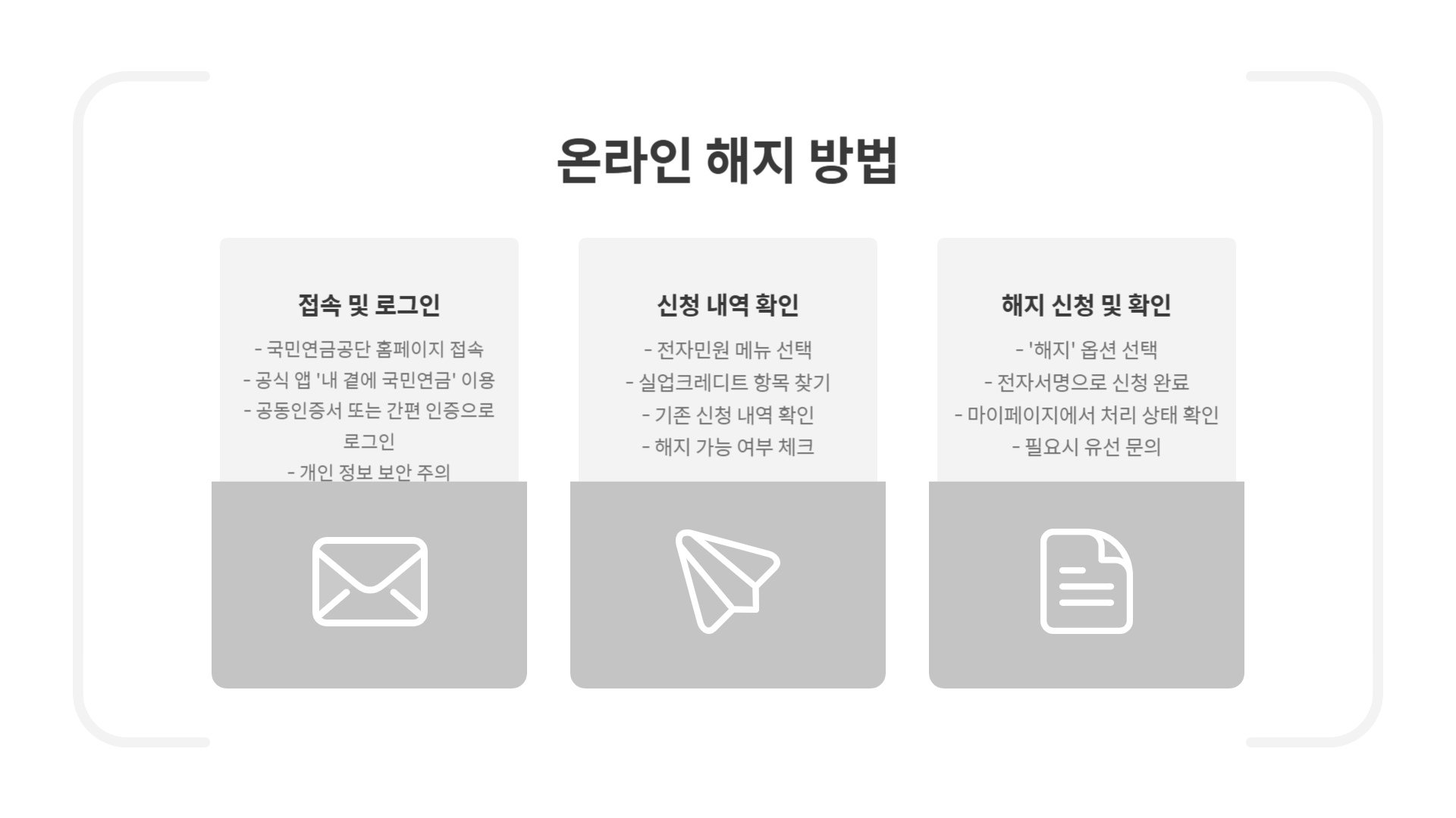 이럴 경우 자동 소멸되기도 하지만, 명시적 해지를 하지 않으면 기록상 혼동이 생길 수 있으므로 사전 정리가 필요합니다. - 추가 납부나 임의계속가입을 고려하는 경우