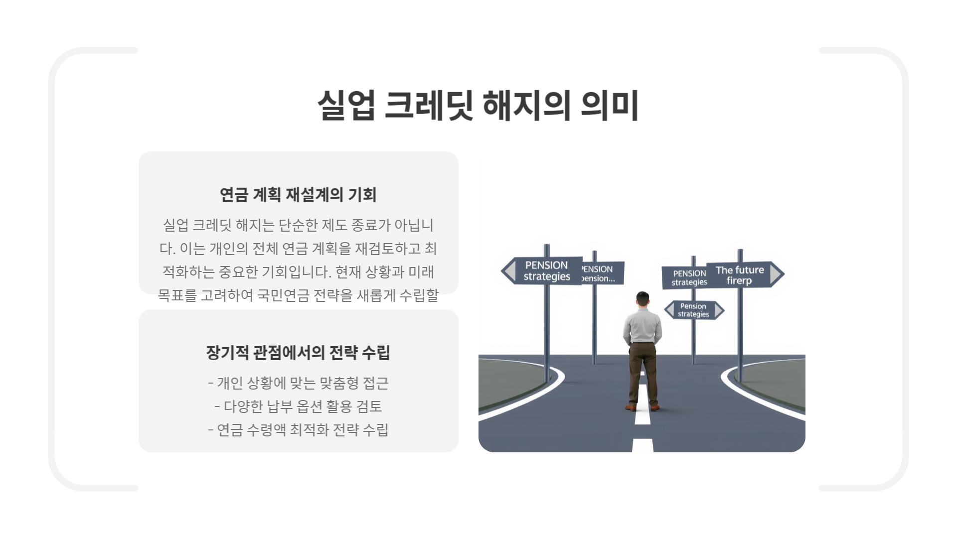 실업 크레딧 신청 해지는 단순한 제도 종료가 아니라, 나의 연금 계획 전체를 재설계하는 과정이라고도 할 수 있습니다. 나에게 유리한 방향으로 국민연금 전략을 다시 짜는 데 도움이 되셨길 바랍니다.