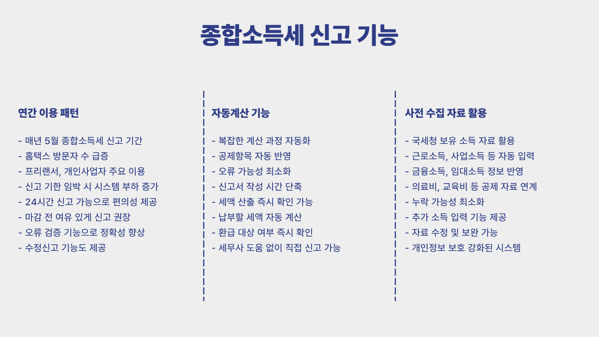 - 종합소득세, 부가세 신고, 민원증명서, 현금영수증까지 다양한 기능 제공