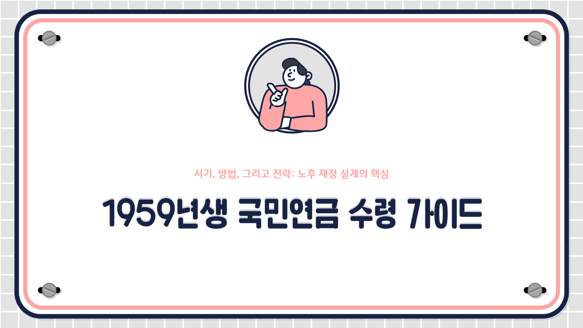 60대에 접어든 지금, 가장 중요한 재정 설계 중 하나는 국민연금을 언제, 얼마나 받을 수 있느냐입니다. 특히 1959년생은 국민연금 제도가 본격적으로 확대된 시기의 첫 세대 중 하나로, 수령 시기 선택이 노후 생활에 큰 영향을 주는 세대입니다. 이번 글에서는 1959년생 국민연금 수령시기, 조기·정년·연기 수령별 장단점, 수령액 시뮬레이션, 공단 상담 팁까지 꼼꼼히 정리해 드립니다.