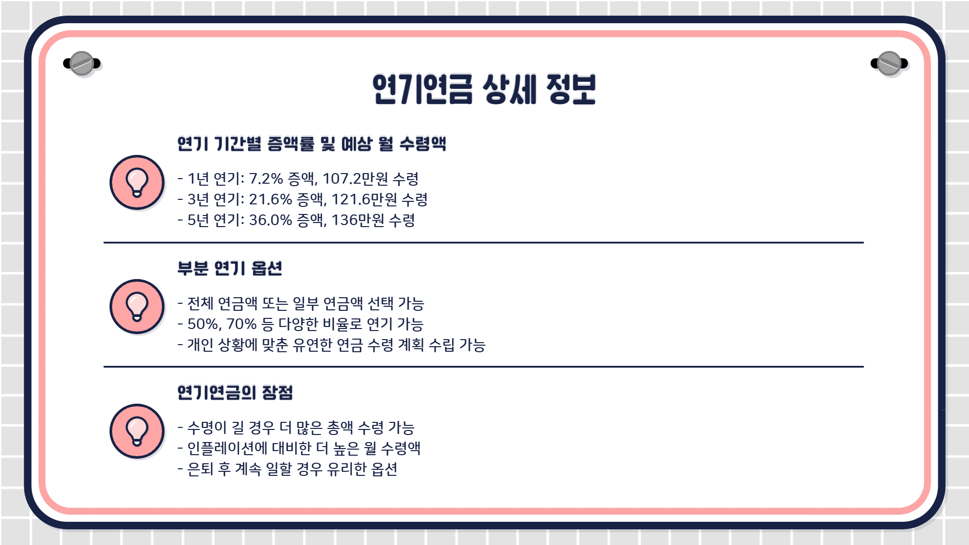 ※ 연기 신청은 전체 연금액 또는 일부 연금액(50%/70% 등)을 선택해 연기할 수도 있습니다.