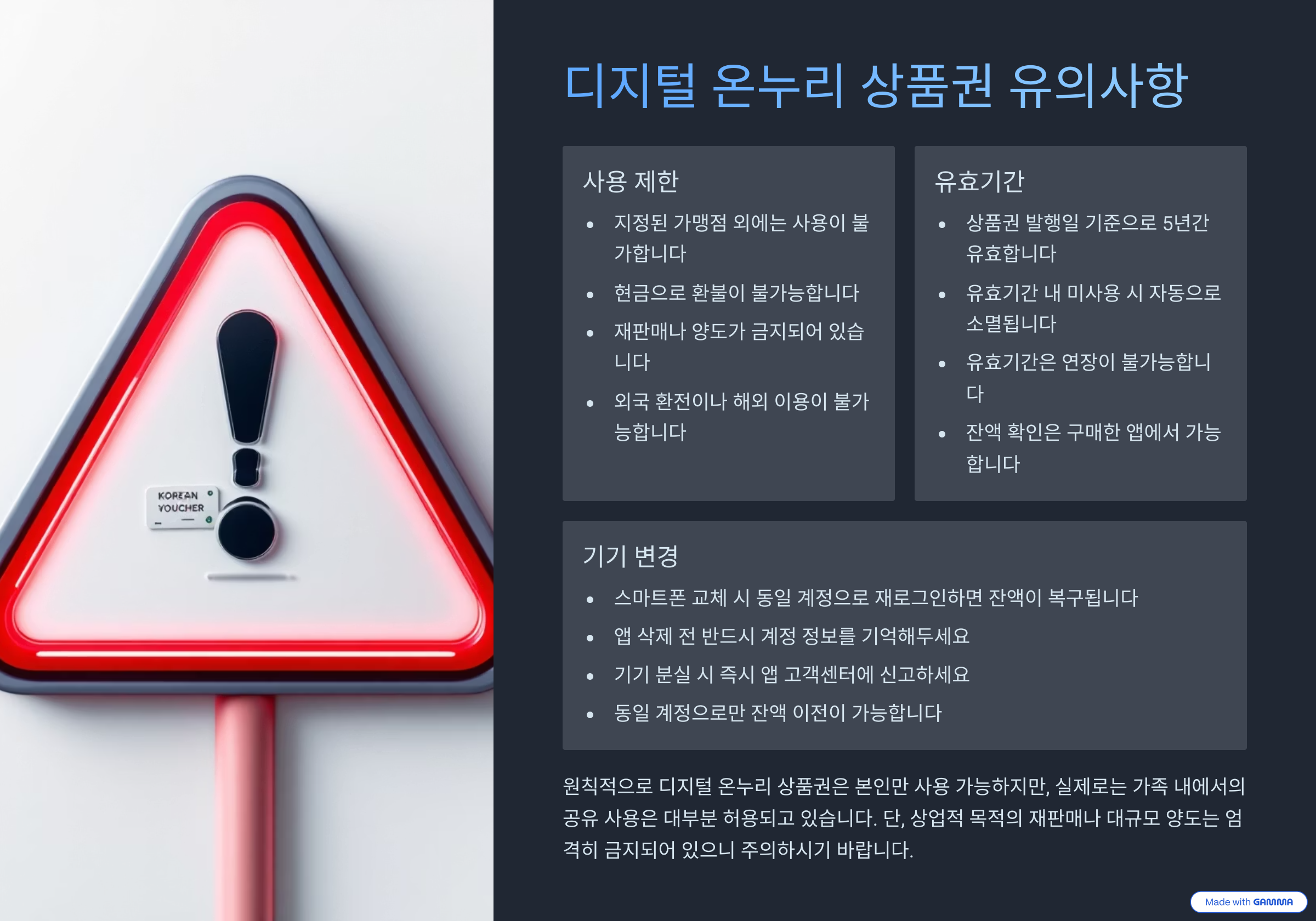 디지털 온누리 상품권 사용방법에는 몇 가지 제한이 따릅니다.