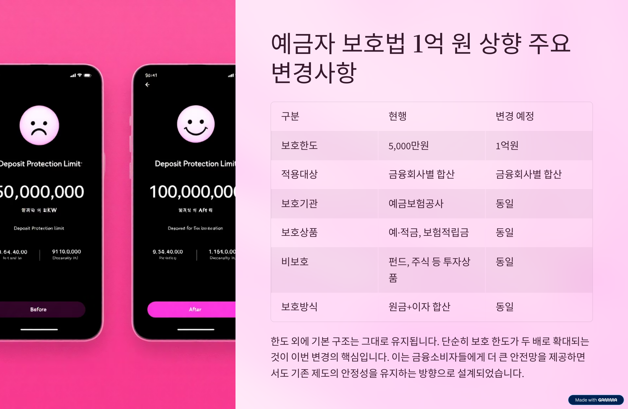 특히 최근 국내외 금융불안 가능성이 커지면서 보호 한도를 조속히 상향 조정하자는 여론이 강해졌고, 정부도 이에 대한 제도개선을 추진하게 되었습니다.