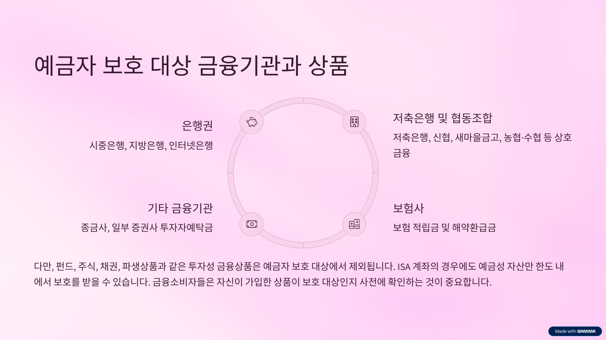 - 주식, 펀드, ELS, 채권 등은 보호 제외