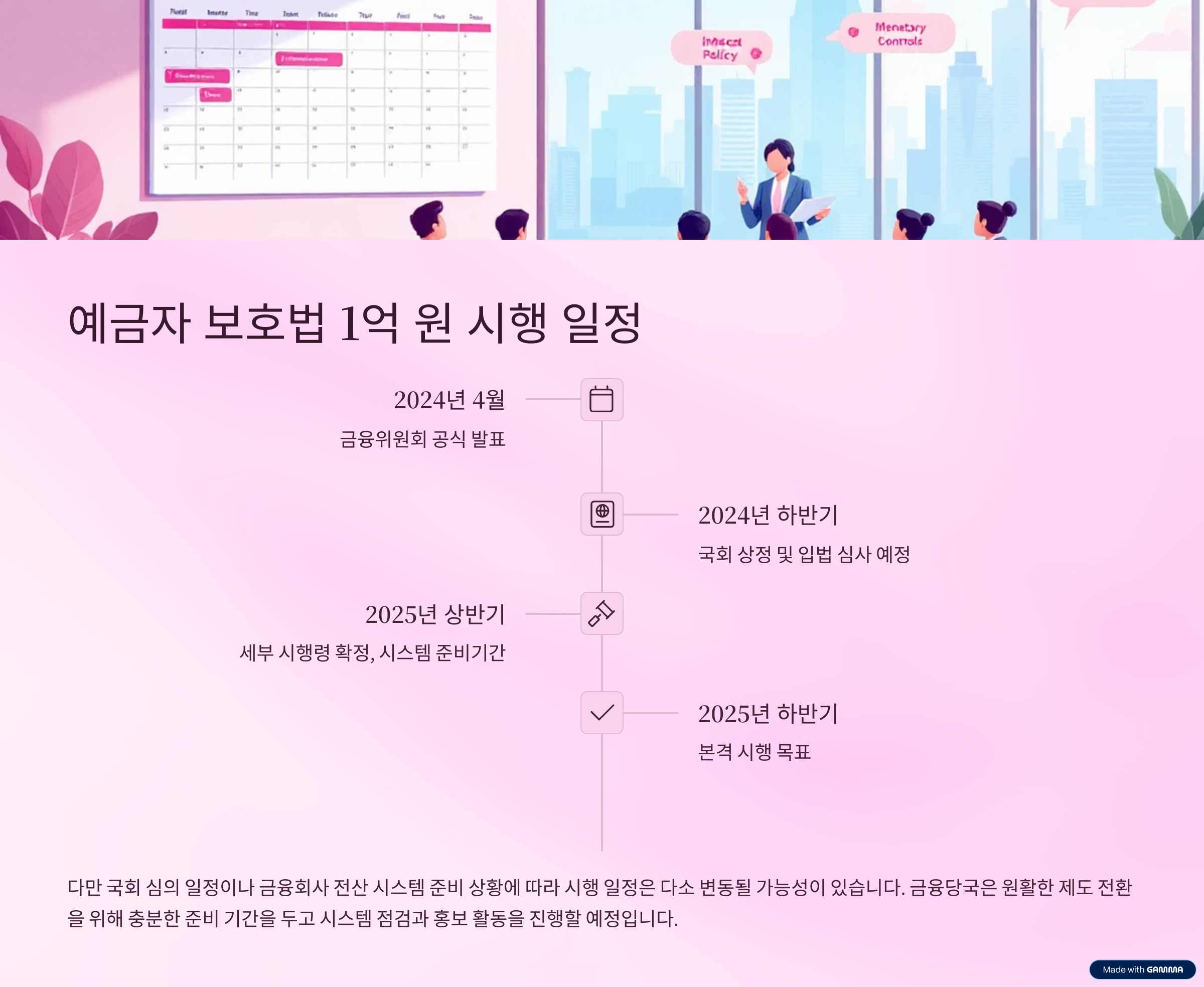 현재까지 확정된 예금자 보호법 1억 시행시기 예상 일정은 다음과 같습니다.